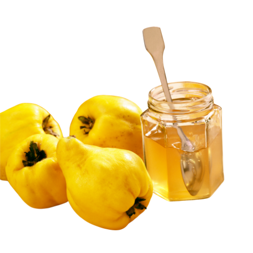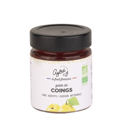 Délicate gelée de coings, ne contient aucun gélifiant, et est conditionnée dans un bocal en verre recyclable.
